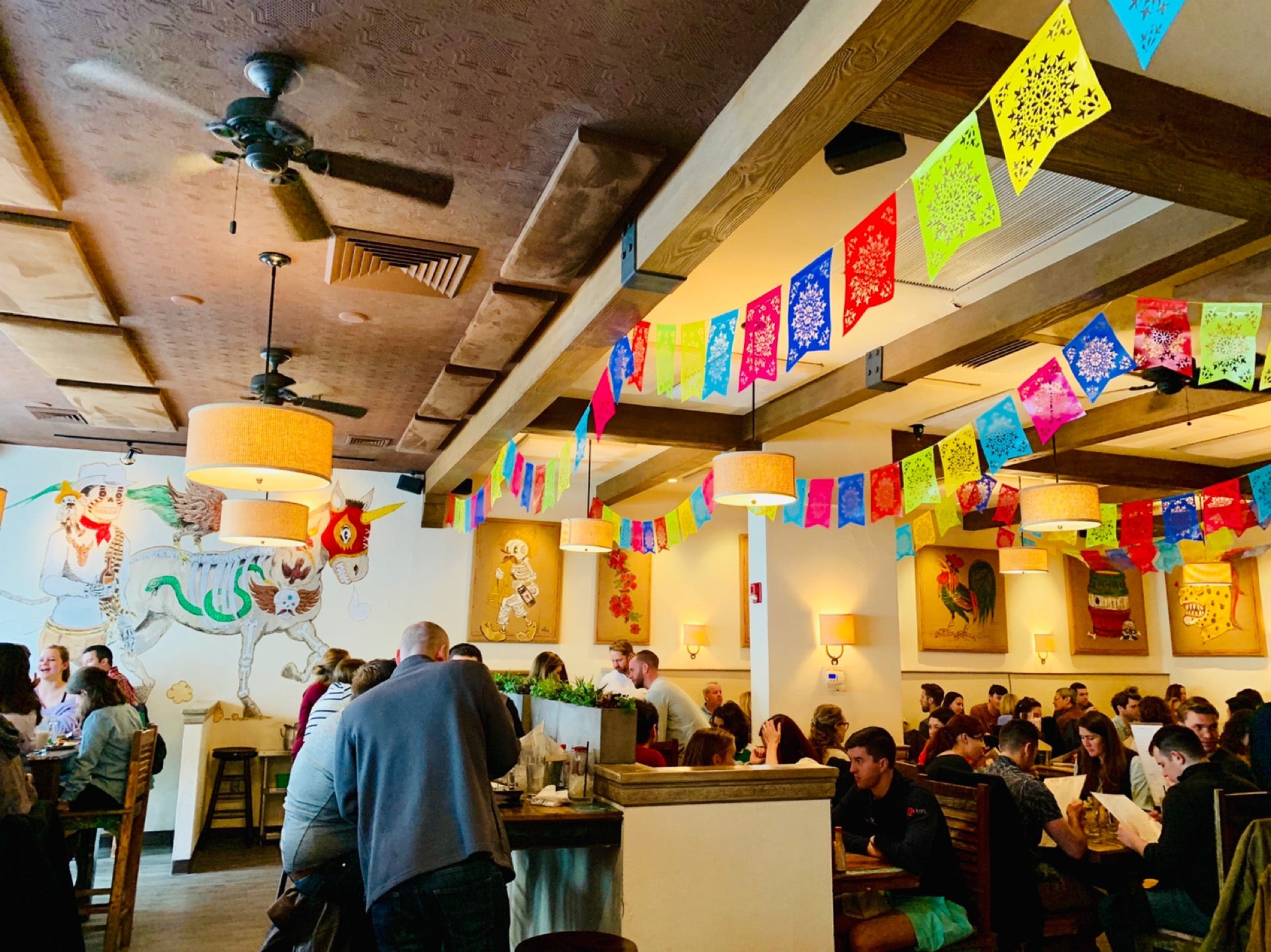 Over 100 tequilas, mezcals & rums set the stage for this Mexican restaurant's festive atmosphere.