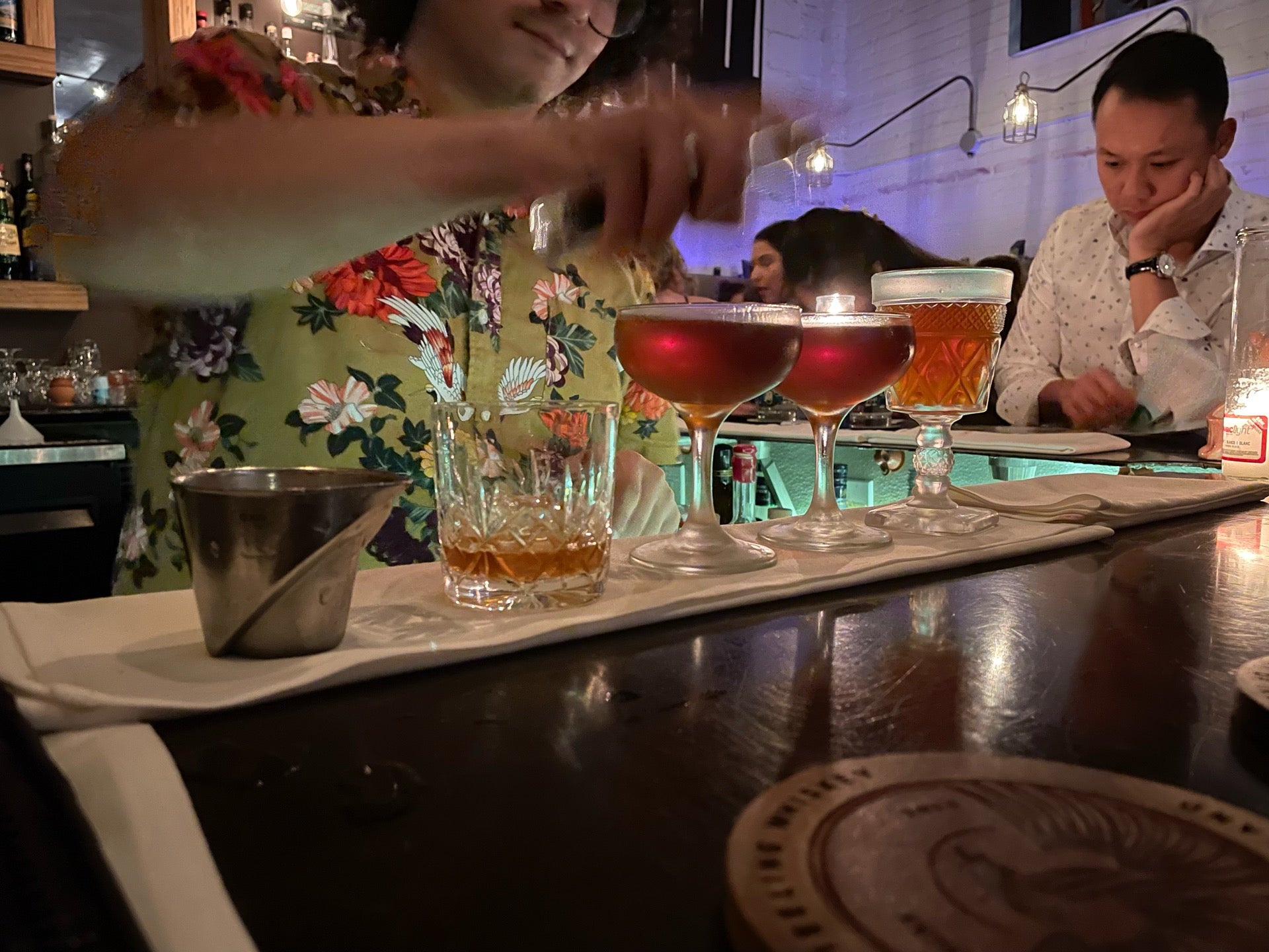 A dimly lit lounge offering expertly crafted cocktails, an ever-changing menu, and a relaxed atmosphere to unwind and indulge.