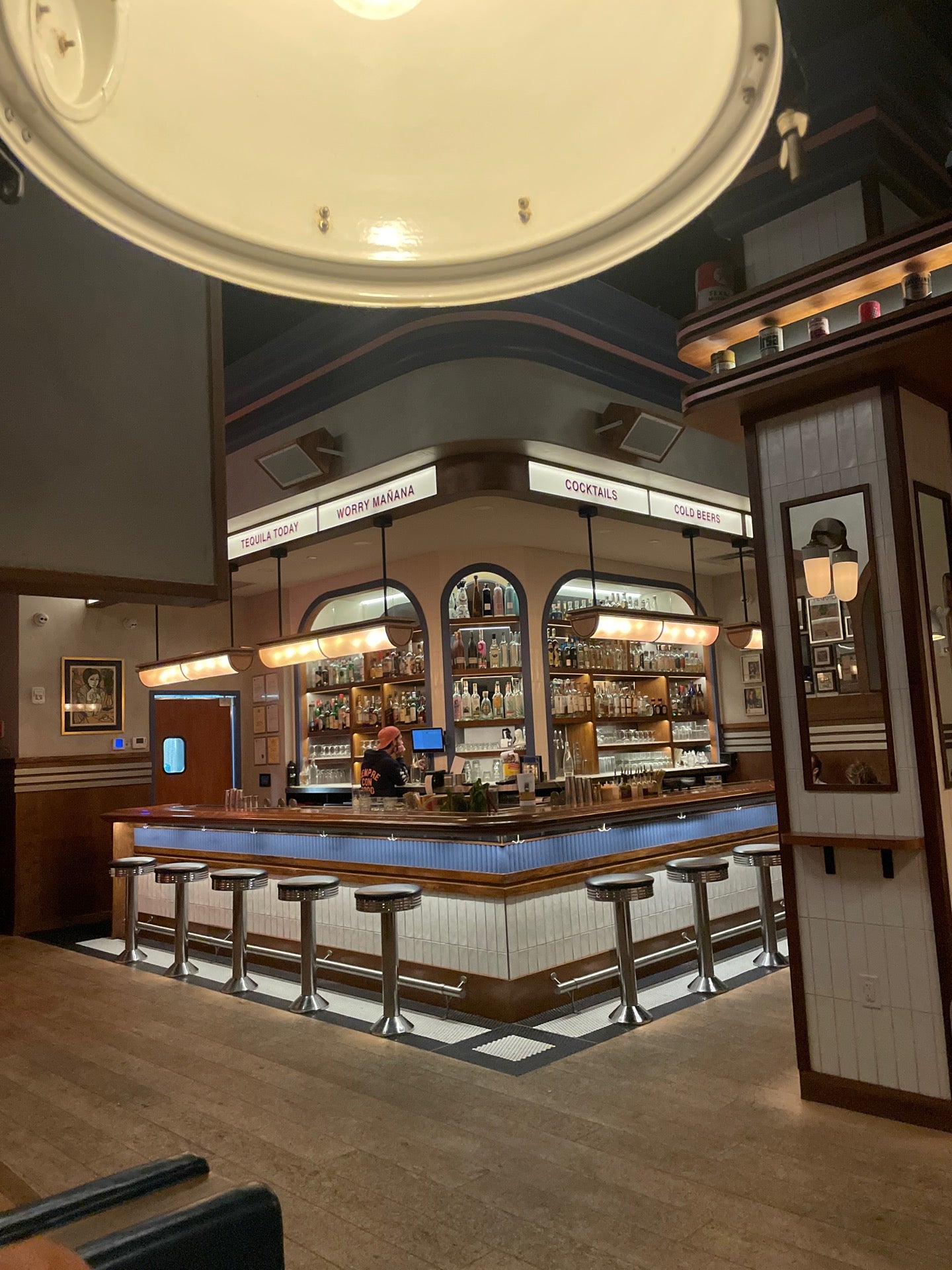 Authentic Mexican taqueria serving tacos all day, with a hidden cocktail bar accessed through a freezer door, offering craft cocktails and a lively atmosphere.